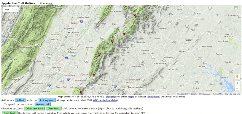 This is how you can follow along with me in as close to real time as I can give you. Also you can use this other google map to see the entire trail and all the shelters and campsites along the way as well as much more information to use in following along with me.