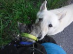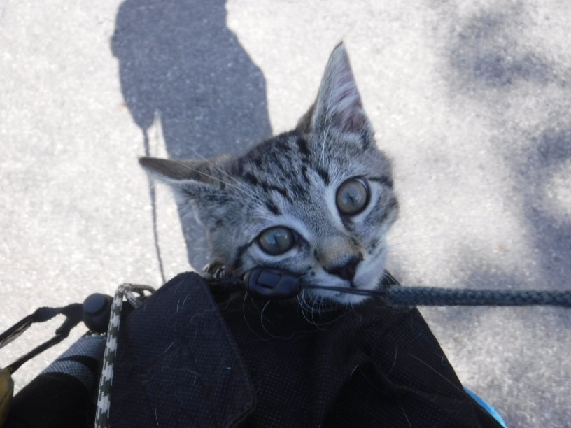 Removed a few more videos of us just moving along, with Jezza still in the pouch. Go Jezza. Ralf even comes over and ignore/sniffs Jezza like “whatever, I know you have a kitten thing, but I’d rather go walk over here!”