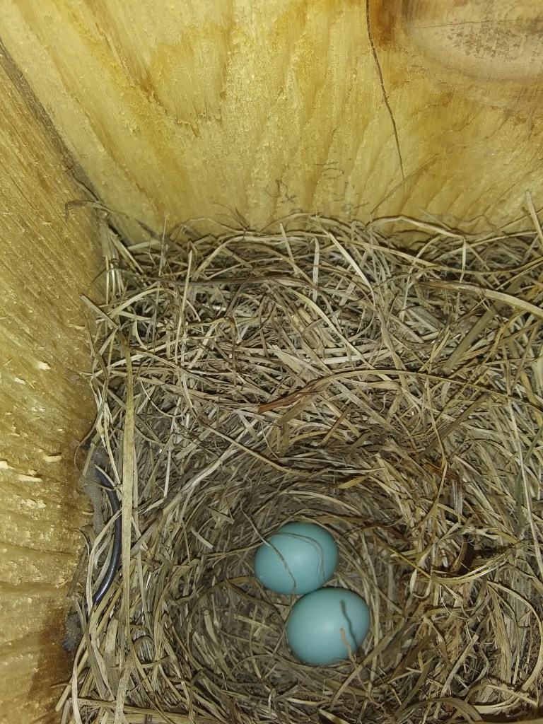 And about this time I was starting to get serious about needing to get out and put up the wren guard, but there were a few other projects that I was roped into… I was hoping that since bluebirds have nested for generations before humans, maybe they could be ok without me for a while.