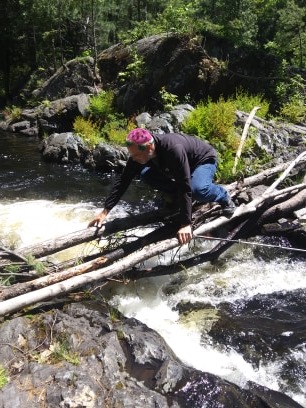 Hi!! Happy Father’s Day!!! Gramps says HI, too. Your Fathers Day present is here and will come with him in July when he takes you to the doctor visit in the unknown city.Love your hair! I hope the kids had a good time hiking with you. Where is Dear River Falls–is that just to the west of Marquette?? before Presque Isle park??? Your pictures are great and I also loved the homemade river crossing with the birch trees.We spent the day with Grandpa Plamann yesterday and went hiking with Bob & Cathy at High Cliff State Park and then went to see Grandpa again this afternoon. Dad asks what day he is supposed to come and get you so you travel to the city where you have to see the doctor and you stay overnight the night before. He was thinking you said you have an appointment on Monday July 6th. However, won’t that be a holiday since 4th of July is on Saturday ??? Saw some purple martins suing gourd houses at the marina at High Cliff. Gavin, Sara, Britt and Erica and Duane were at our house Friday night. We drove down to Appleton Saturday morning. We were in sunshine today until Antigo, when it started getting cloudy and progressed to black clouds and to a heavy downpour about 5 miles below Three Lakes. It’s been drizzling here ever since. We went from 82 degrees in Appleton to 61 degrees in Conover today. Well, time to get to bed–or take a shower and then go to bed. I get to come back to the library to work tomorrow! We will not be open until after 4th of July, and on a limited basis, but at least Mickee and I get to join Sara and get back closer to normalcy. Love and Kisses, Mom