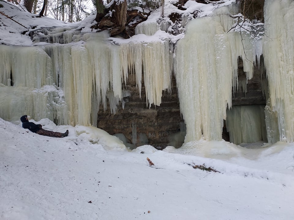 Today I went with some neighbor friends to the Eben Ice Caves. It is about 35-40 minutes from my house. Every year it is different as it is all natural. The property belongs to a private farmer who, in winter, allows visitors free of charge to go see them. It is about 1 mile into the woods. My family and friends try to go at least once a year. This year was one of the best.