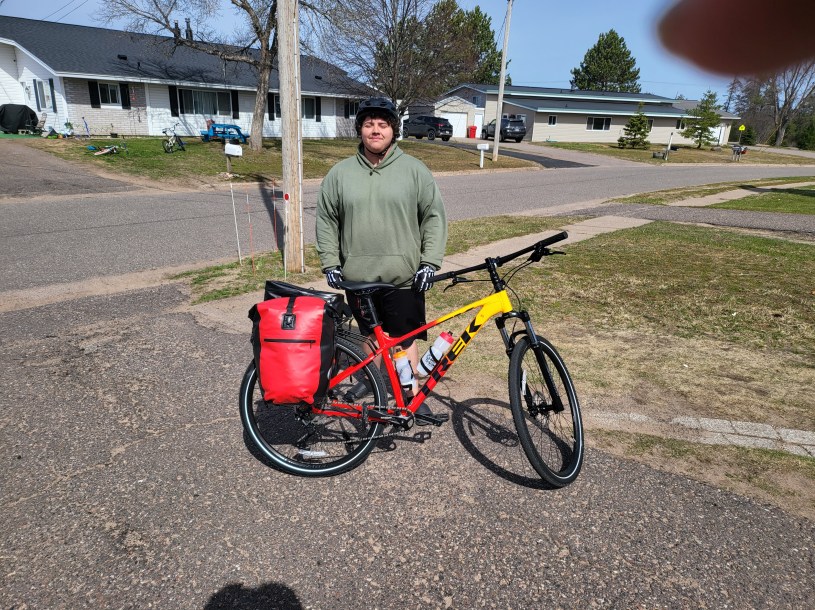 Passenger side Pannier: 3 shorts, 3 shirts, 3 socks, rain jacket & pants, long-john’s, toiletries, reflective vest, & shower shoes.