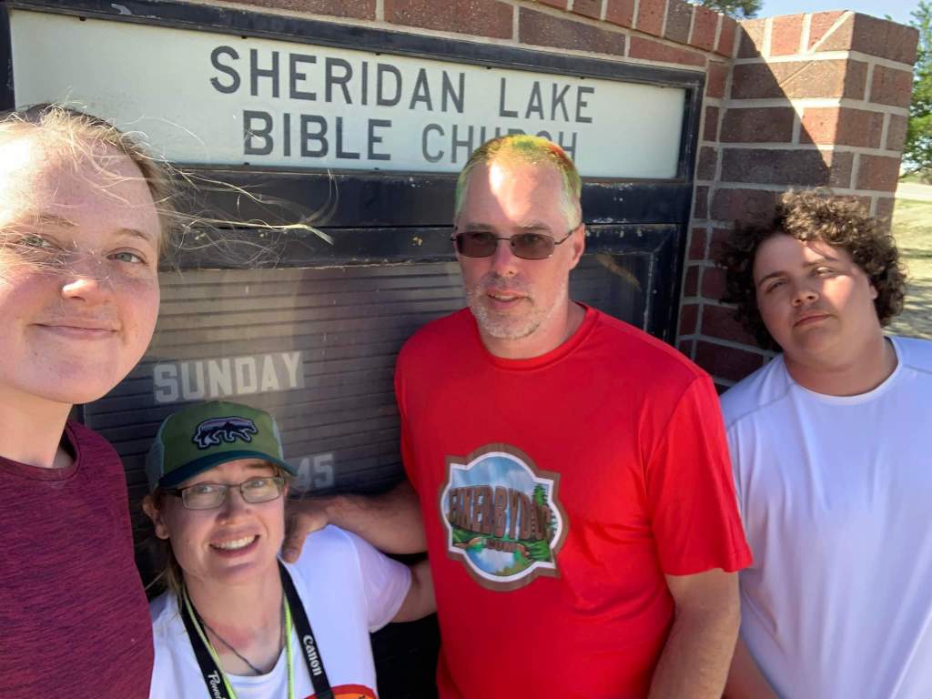 Ending the day (Sunday, May 15th) in Sheridan Lake because our maps said there was a convience store and other amenities, but we have to wait until tomorrow morning to access them. Sheridan Lake Bible Church put us up for the night and supplied pancakes, sausage and a roof.