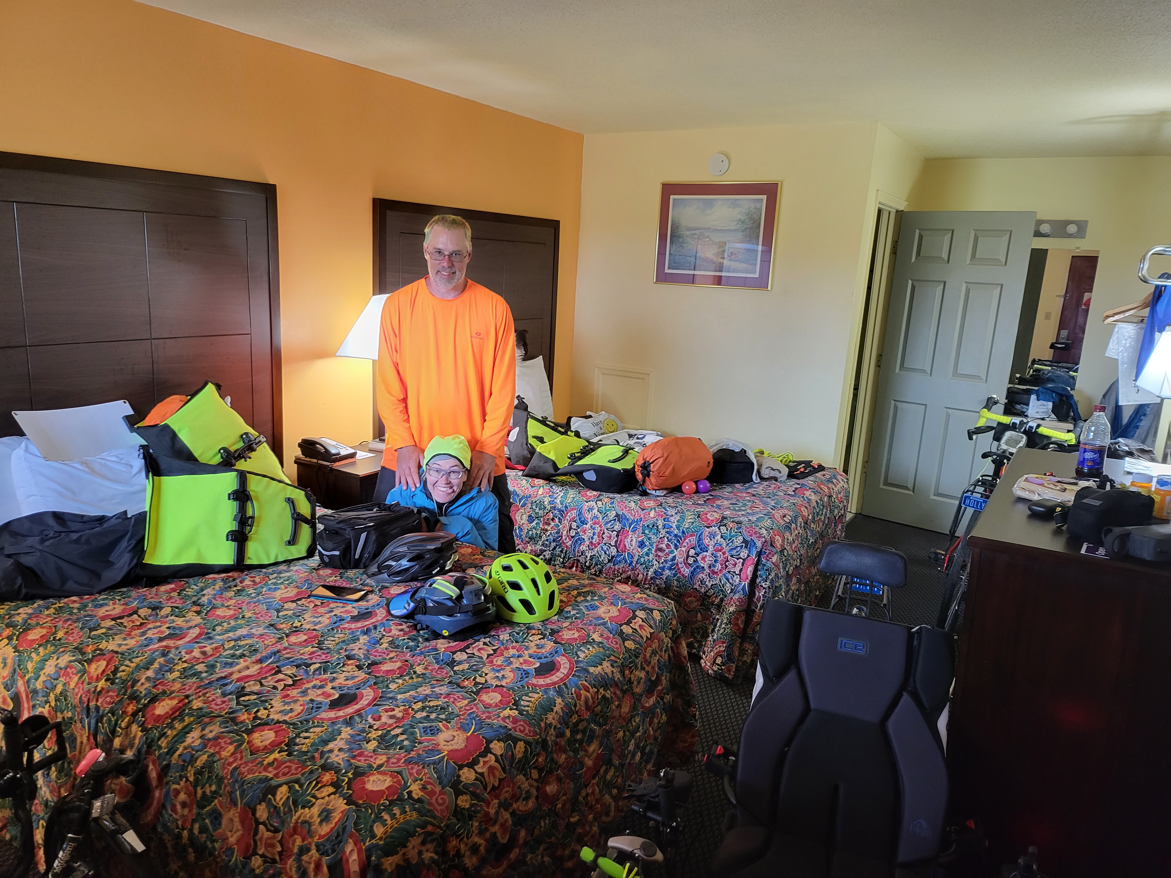 So Addie’s parents met up with us to bring him home. And since they got here the morning of a stormy couple of days, we decided to hitch a ride ahead of the storm. It also worked in our favor because we had nearly 85 miles of limited services to pedal yet.