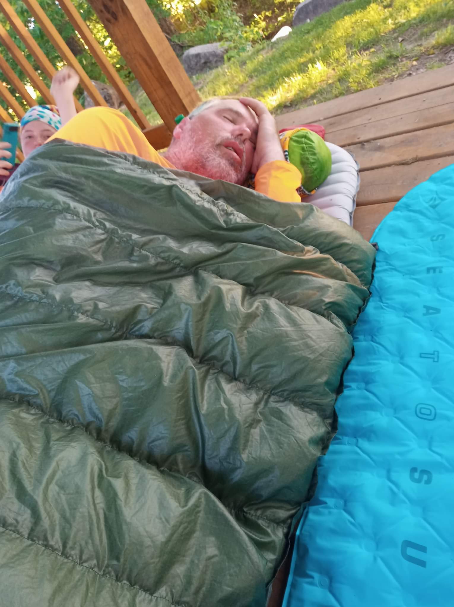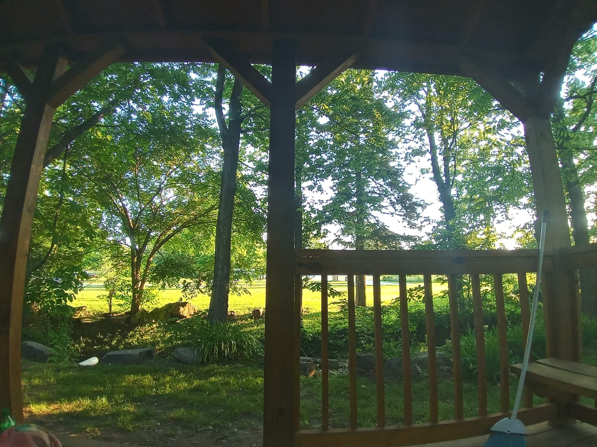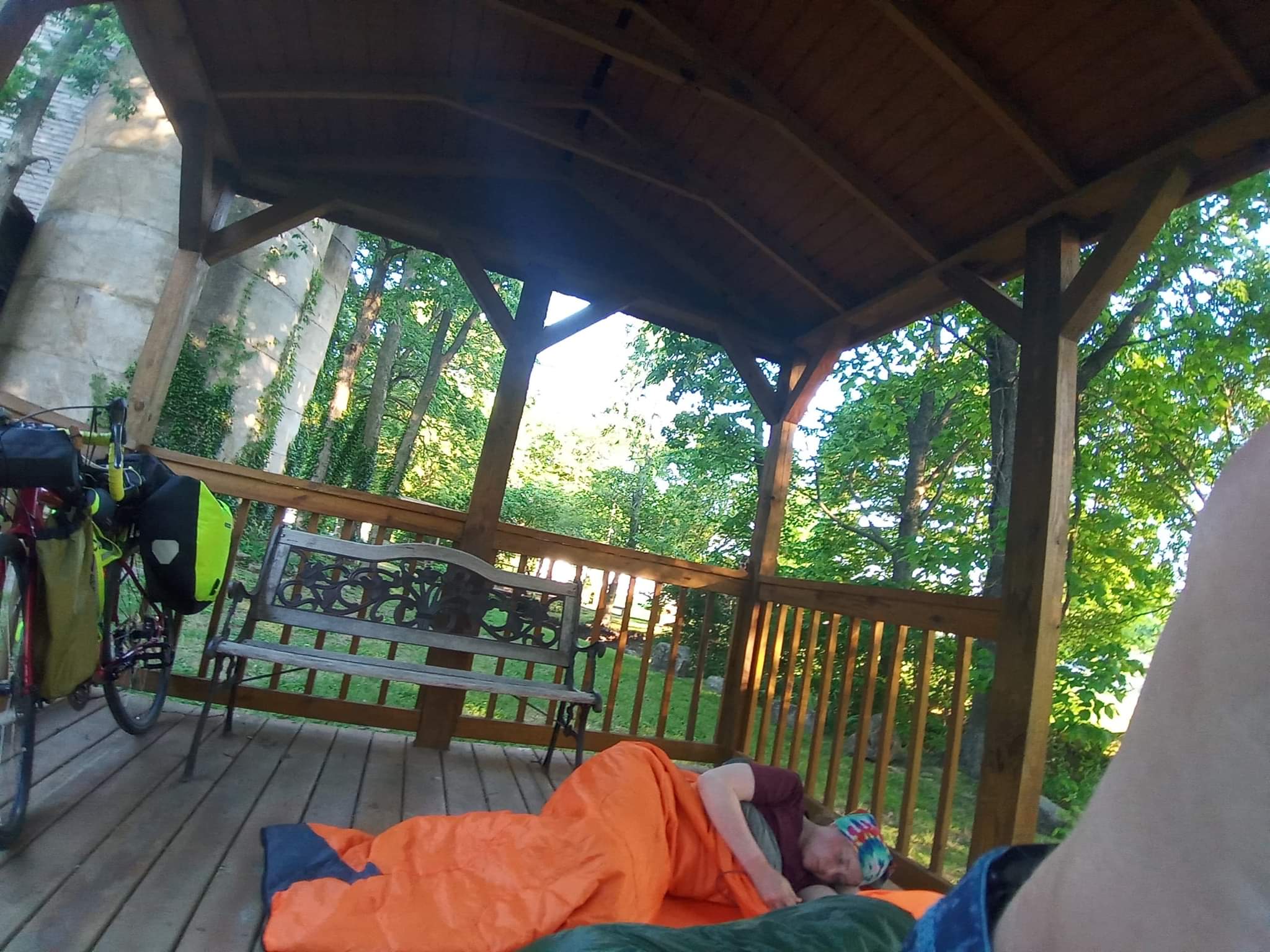 Addie got some good pictures of us this morning in the gazebo. She got a good picture of how we blocked off an entrance to the gazebo last night to.