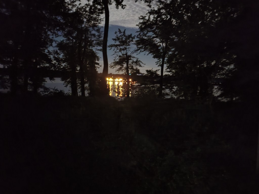 We set up and ate dinner, watched some fireflies and a boat add some glow to the evening, then went to bed. Around 3 a.m. we woke up because Ryan heard something messing with our gear… we sort of ran off some raccoons but they spent a while lurking noisily near by.
