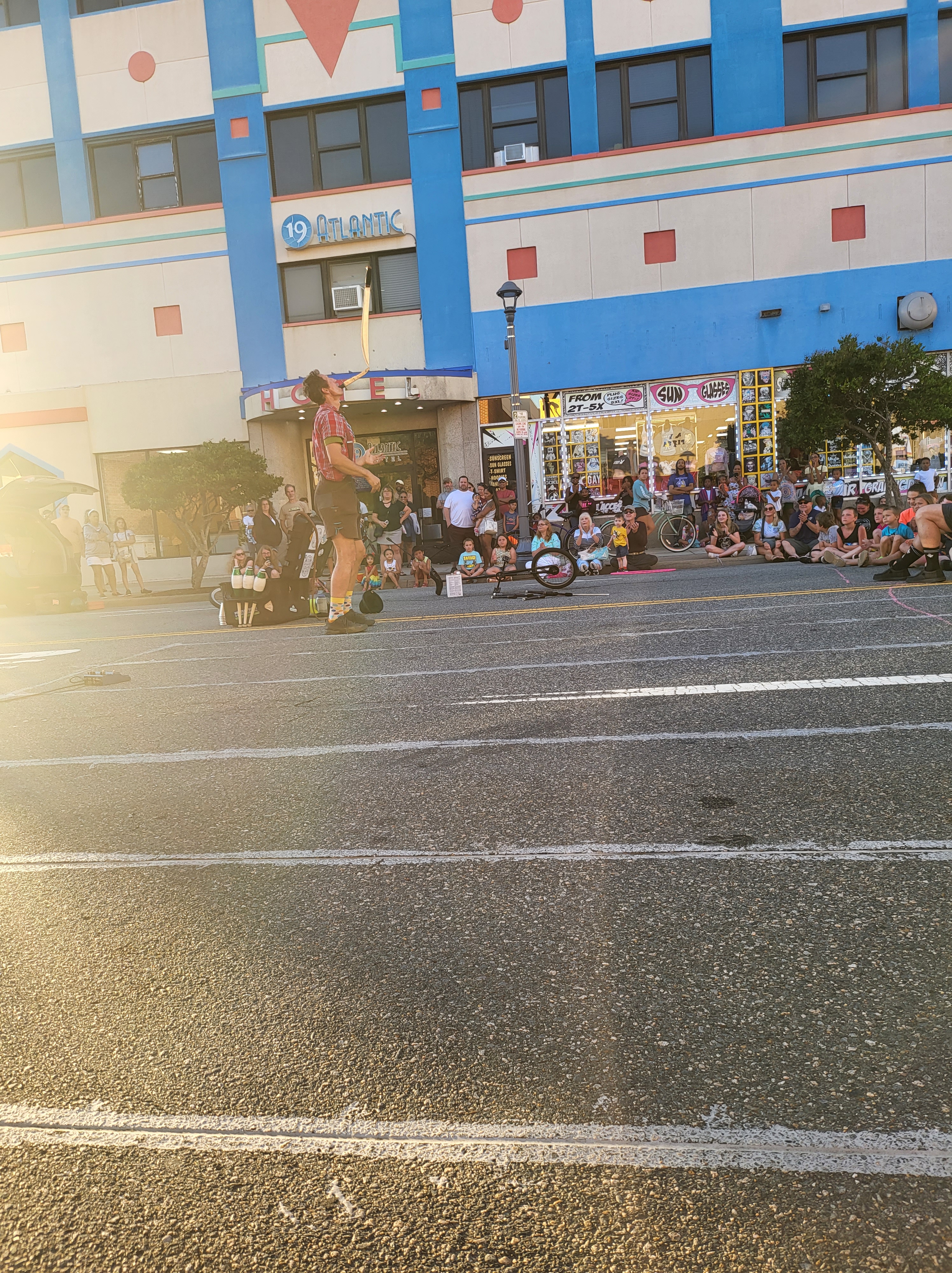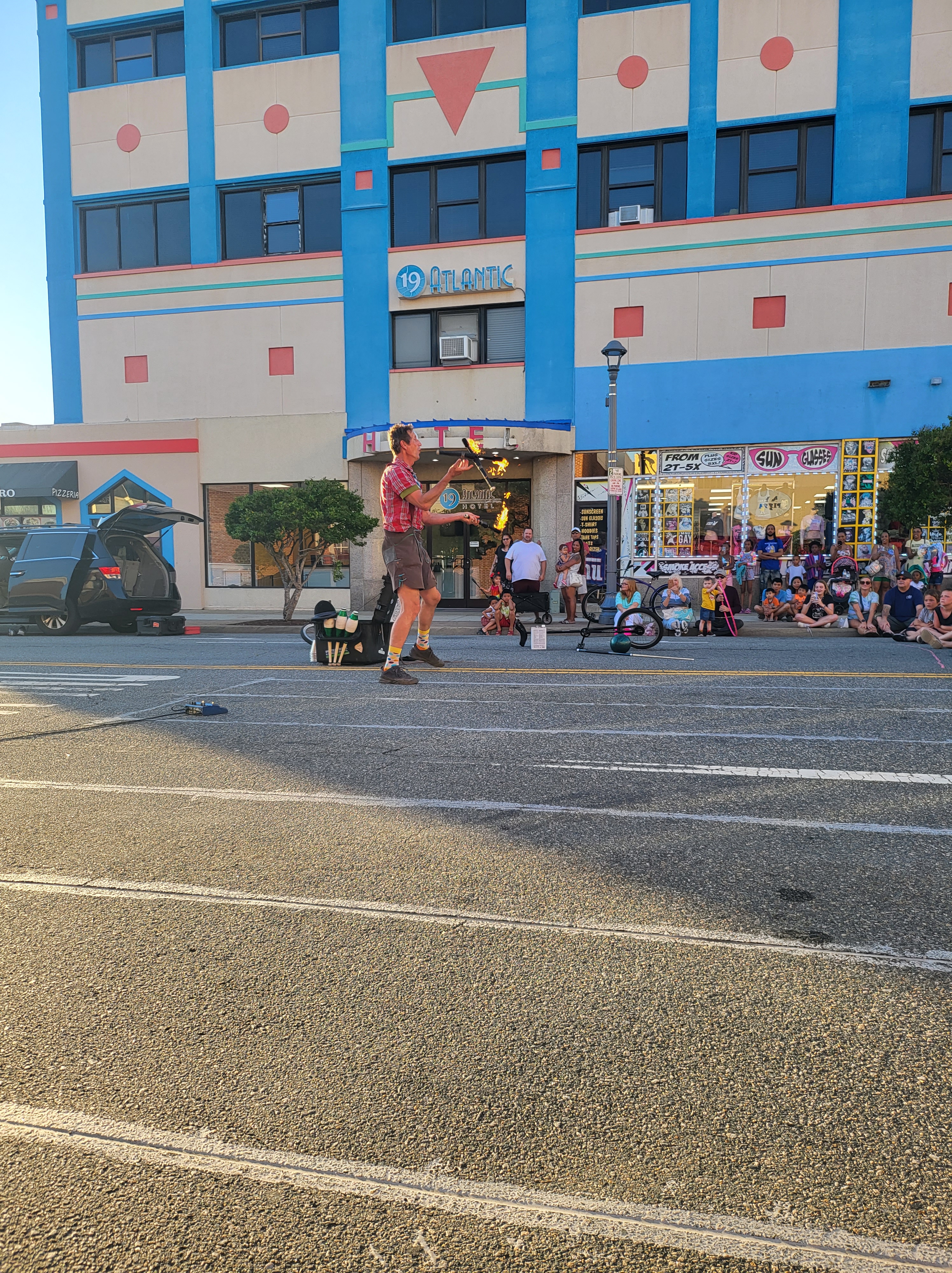 On our way back to the car from our beach adventures, we saw a street performer. Stopped to watch his act. He’s a really funny guy, definitely would watch him again!