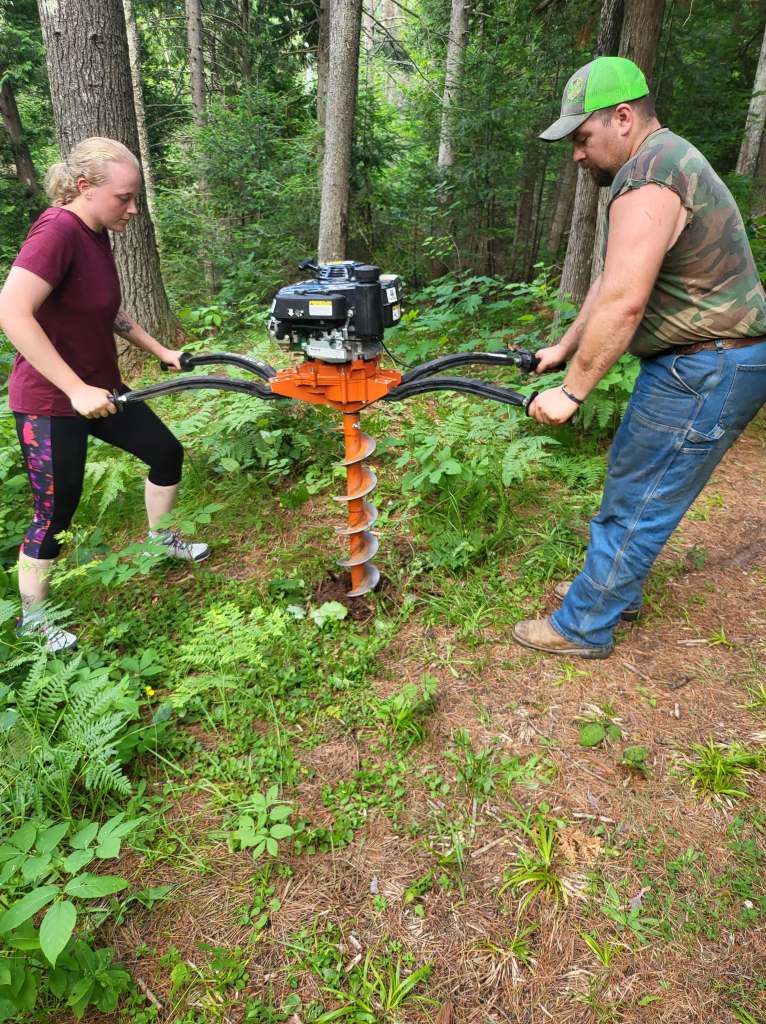 We rented a gas auger and drilled about 50 holes for setting the posts.