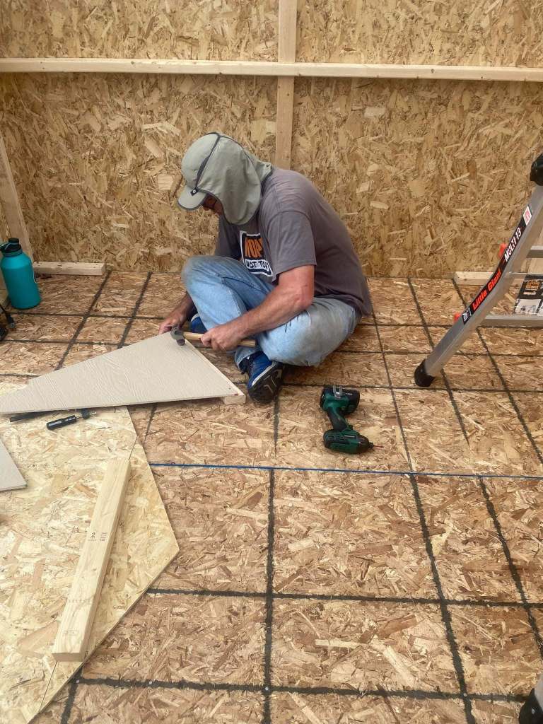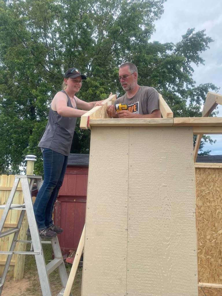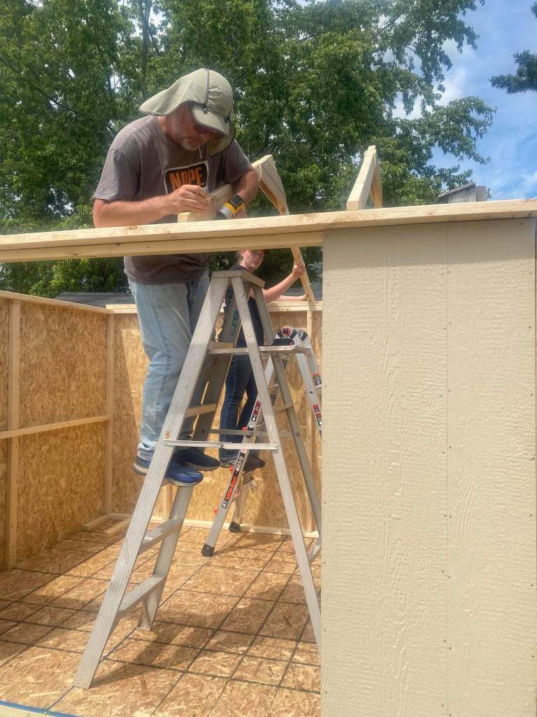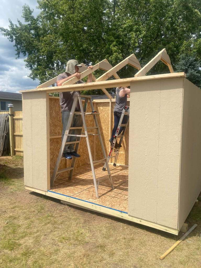 The rafters were off, so we had to go back to Menards and purchase two sheets of plywood and cut them to fit ourselves.