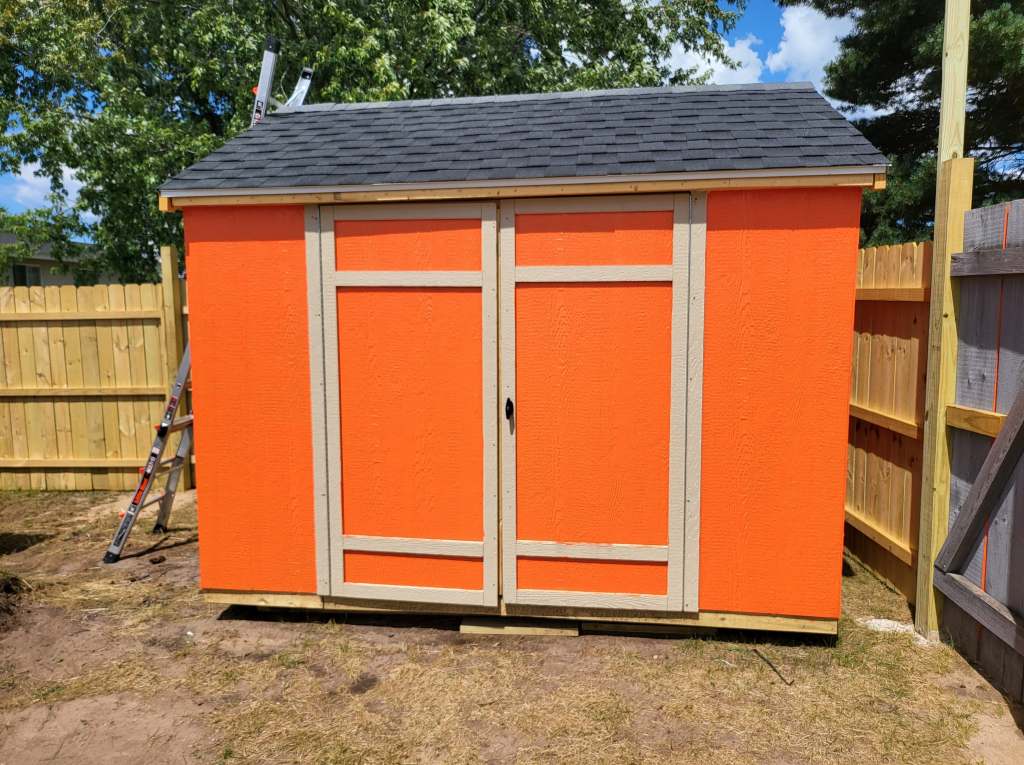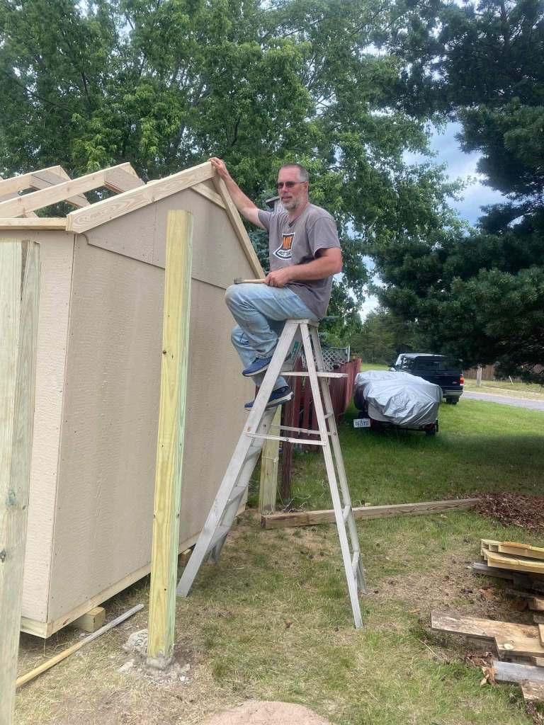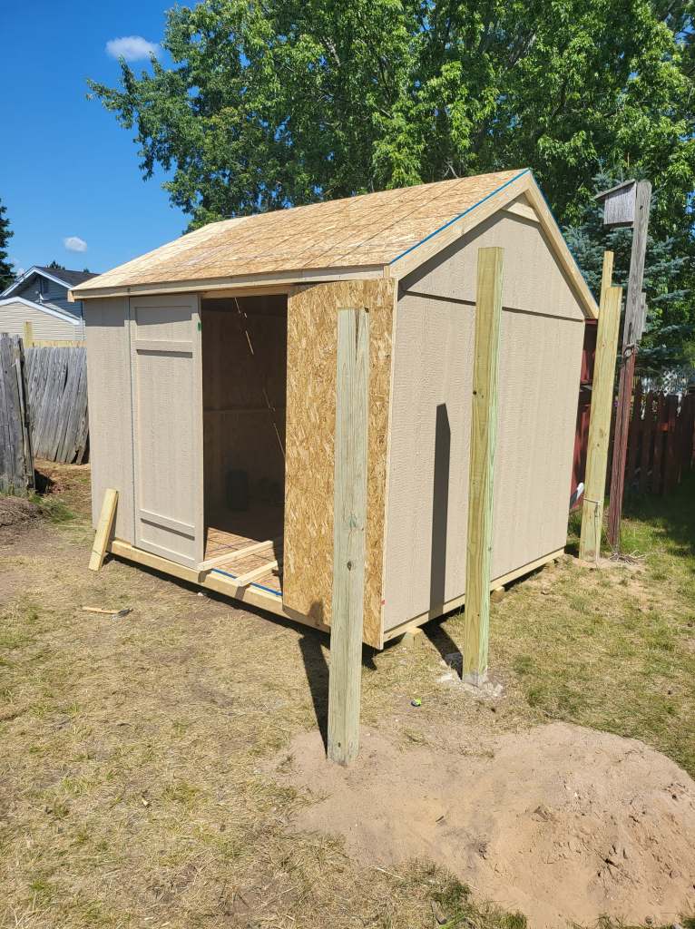 Tried searching all over the place for somewhere that builds and delivers sheds, but we couldn’t find anything. So we bought this kit from Menards and built it ourselves. Want to know what we found while biking to the Mackinac Bridge in July??? Two different places with the exact shed I have been looking for! Built and ready to deliver.