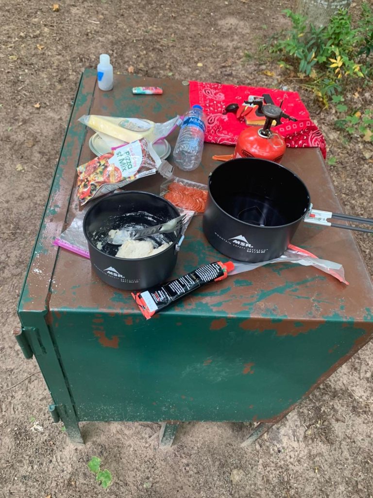 Got up at 4 in the morning to pack up and eat before a rain storm that was supposed to come. Luckily it didn’t, but being that we were the first ones on the trail, I collected all of the spider webs.