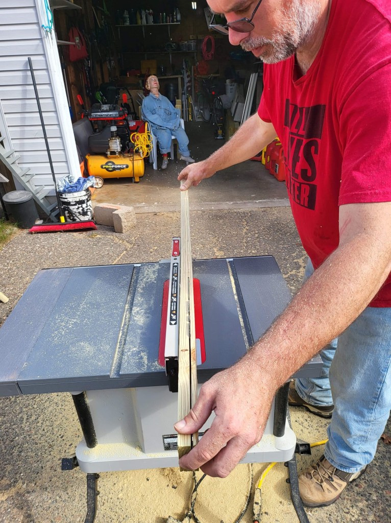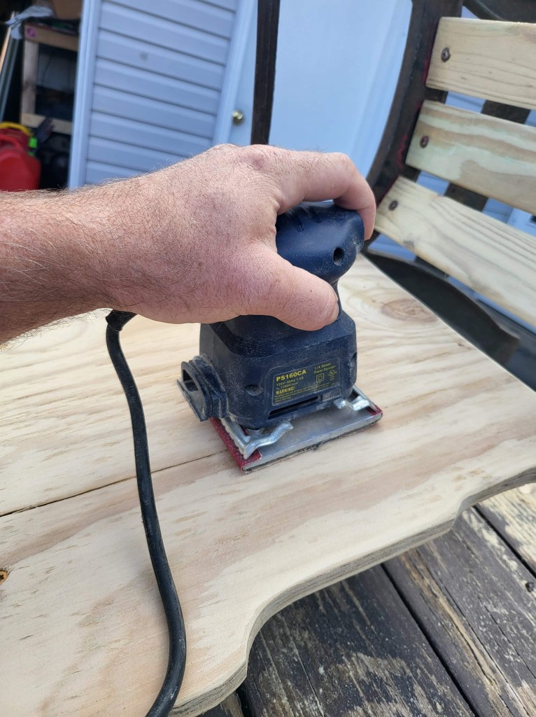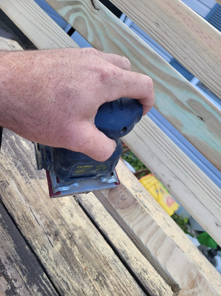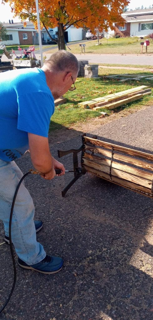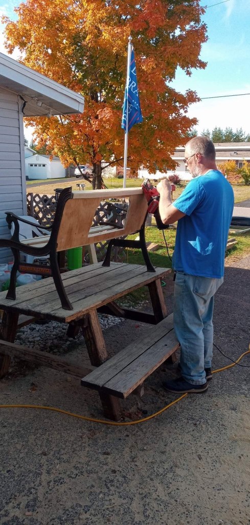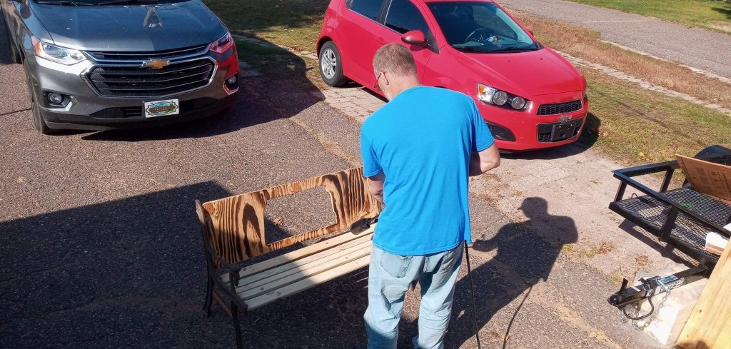 First, we took everything apart and were careful not to mess up the metal pieces. Then cut new boards to replace the old ones out of a weather-treat 4×4 post.