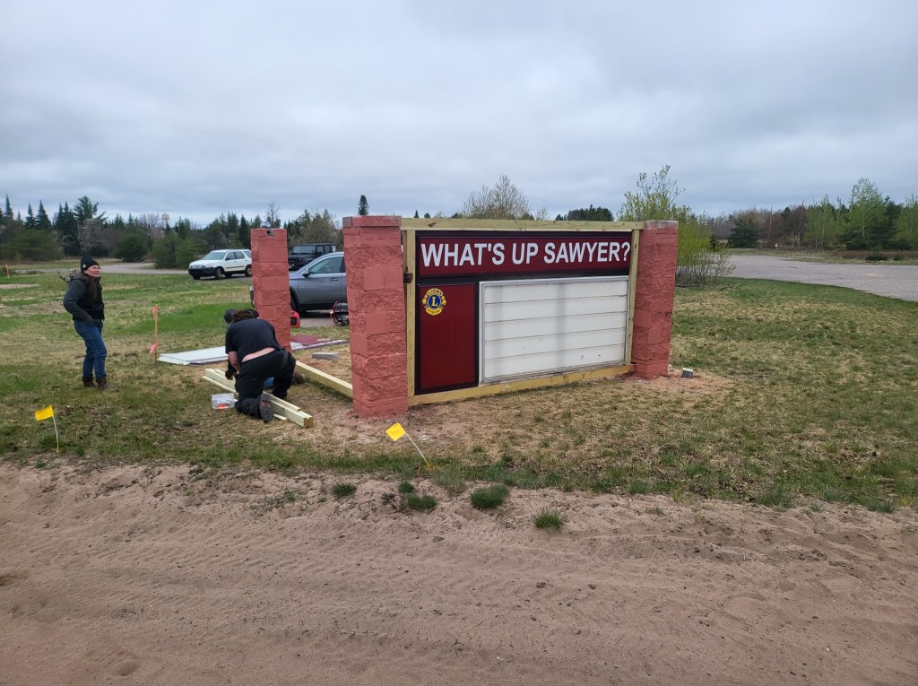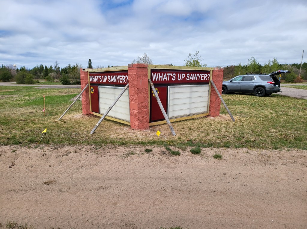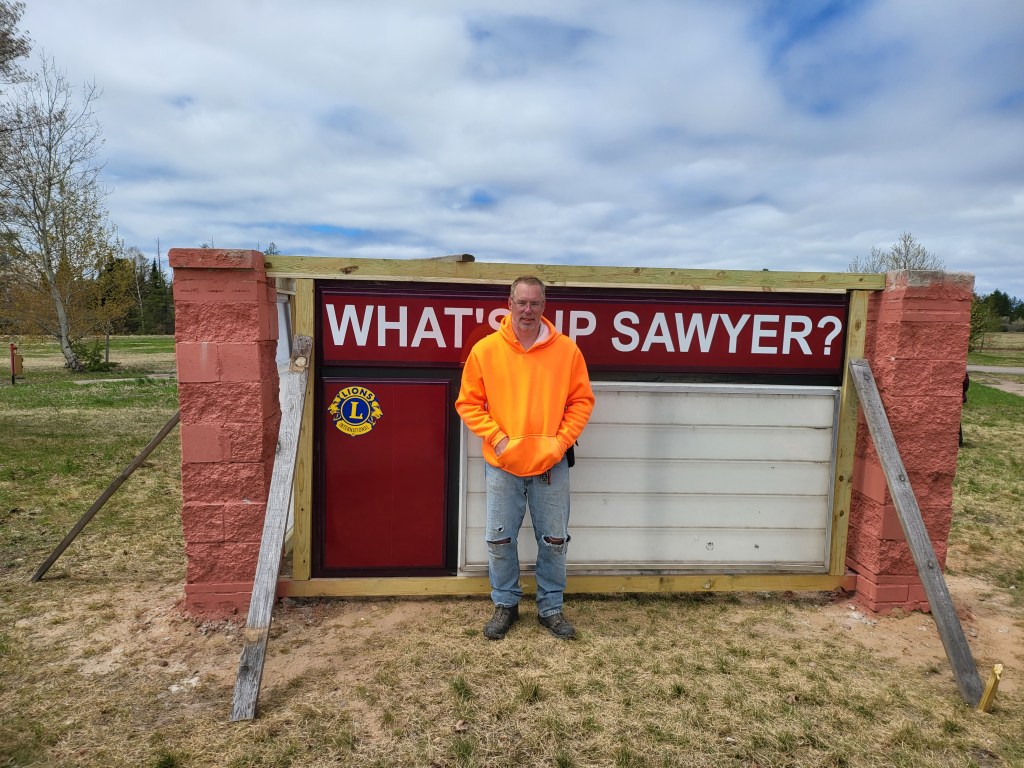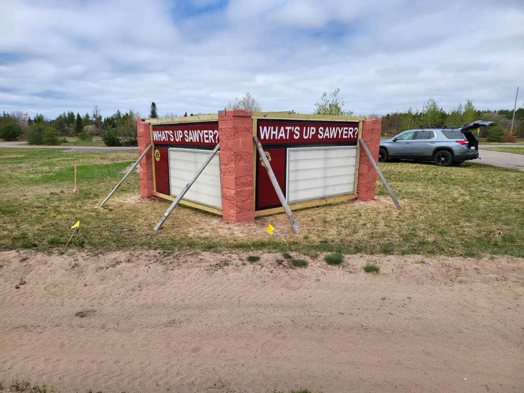 The Gwinn Lions Club, which my wife and I are members of, donated $900. A local block company donated the cement blocks. The 906 Community Church donated the sign panels and the vinyl lettering “What’s Up Sawyer?”. I donated $1000 myself.