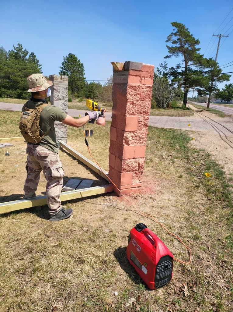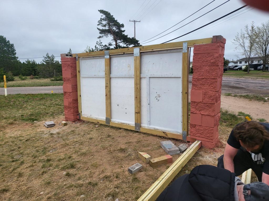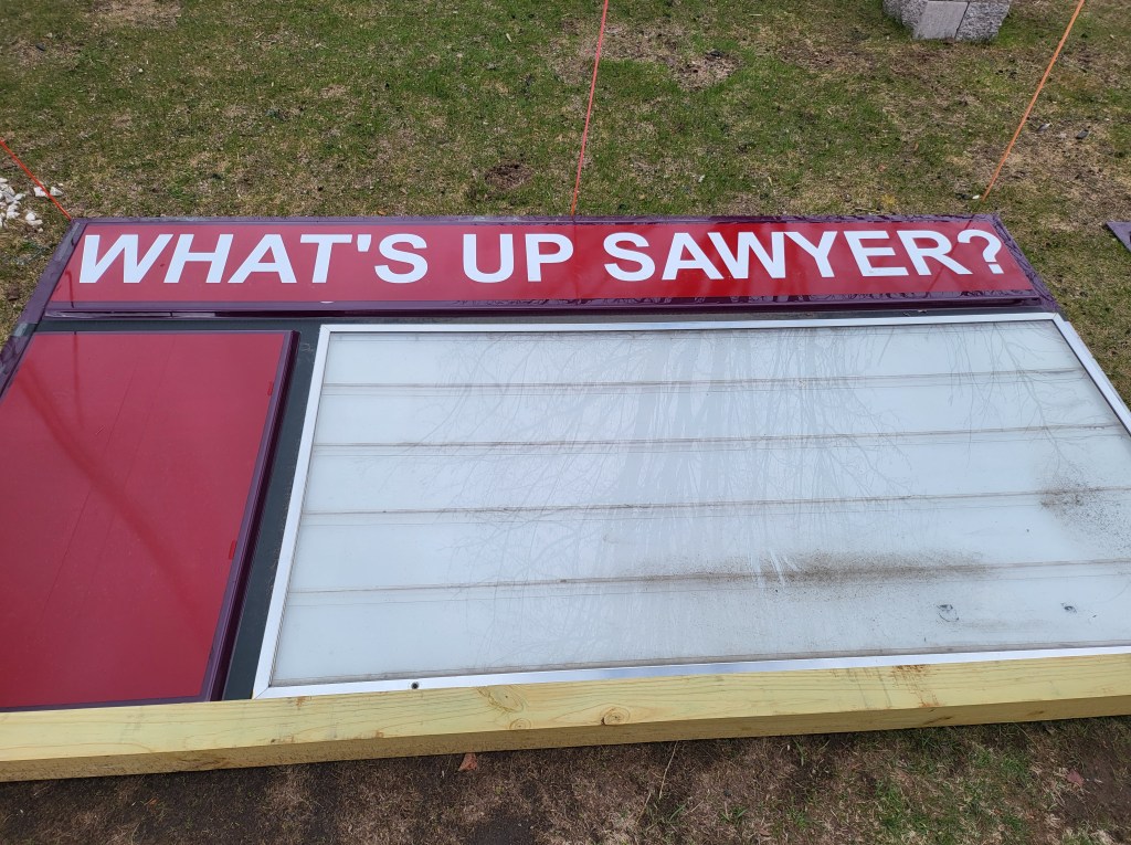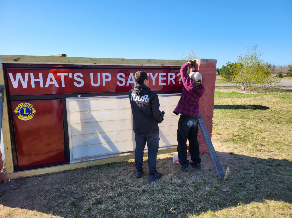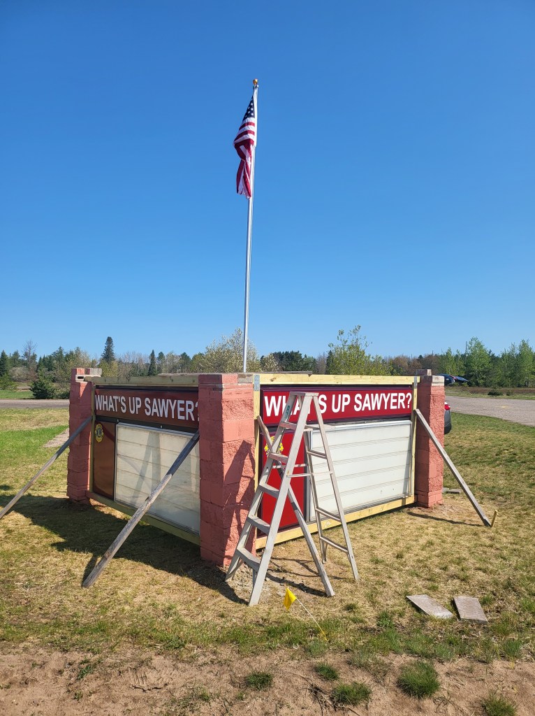 The Gwinn Lions Club, which my wife and I are members of, donated $900. A local block company donated the cement blocks. The 906 Community Church donated the sign panels and the vinyl lettering “What’s Up Sawyer?”. I donated $1000 myself.