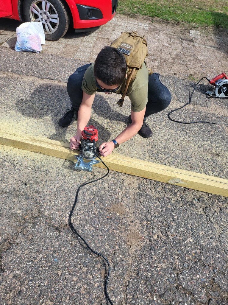 It took me and two teen boys, Issac Serna and Gordon Hendrickson, about a week to build. I taught the boys how to use the tools and equipment used on the project. They had a great time and did a great job working on the project and their parents are very proud of them. I just wish we could have had more kids involved.
