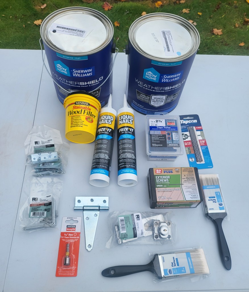 I purchased most of the materials from Lowes and managed to come in under budget. The letter tracks and lettering was ordered from Amazon. We are waiting on the solar lighting to arrive next week.