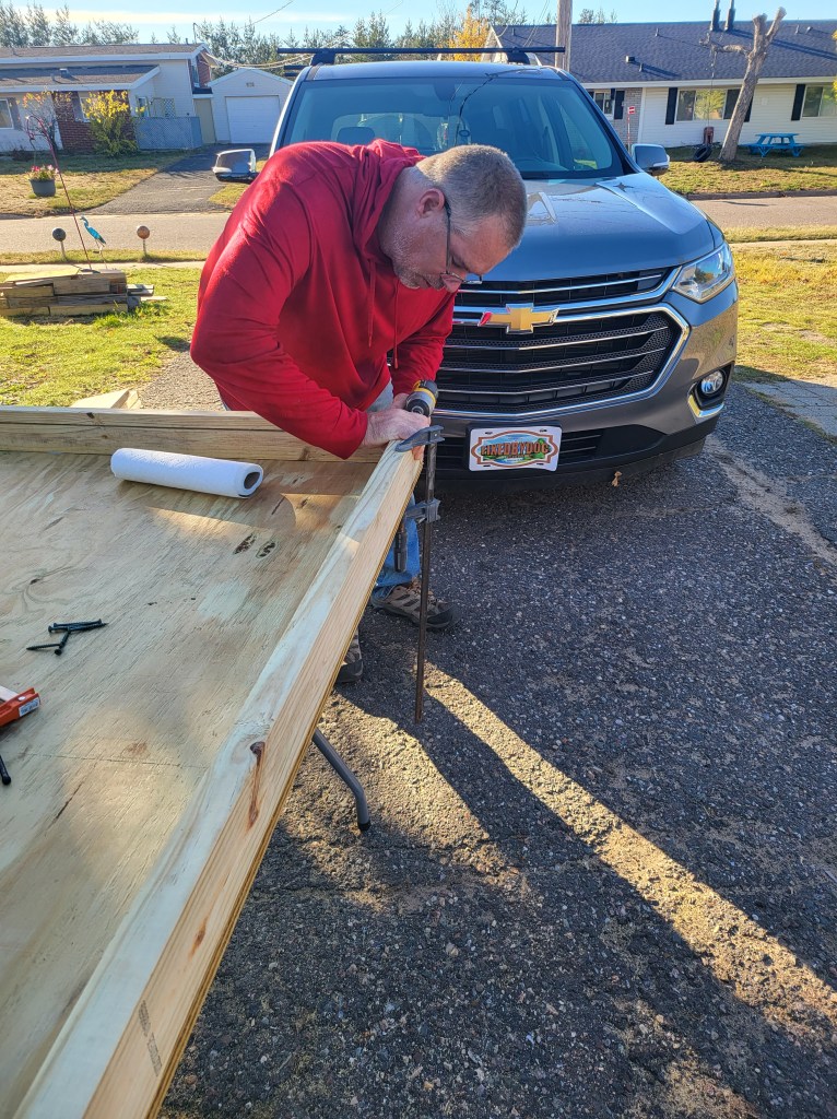 Once the area was prepped we then began building the letter box. It is approximately 3ft by 6ft. The side swings open so the plexiglass window can slide out giving access to change the letters.
