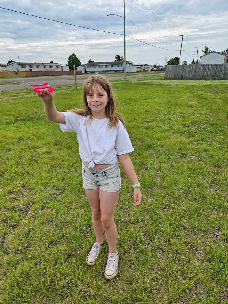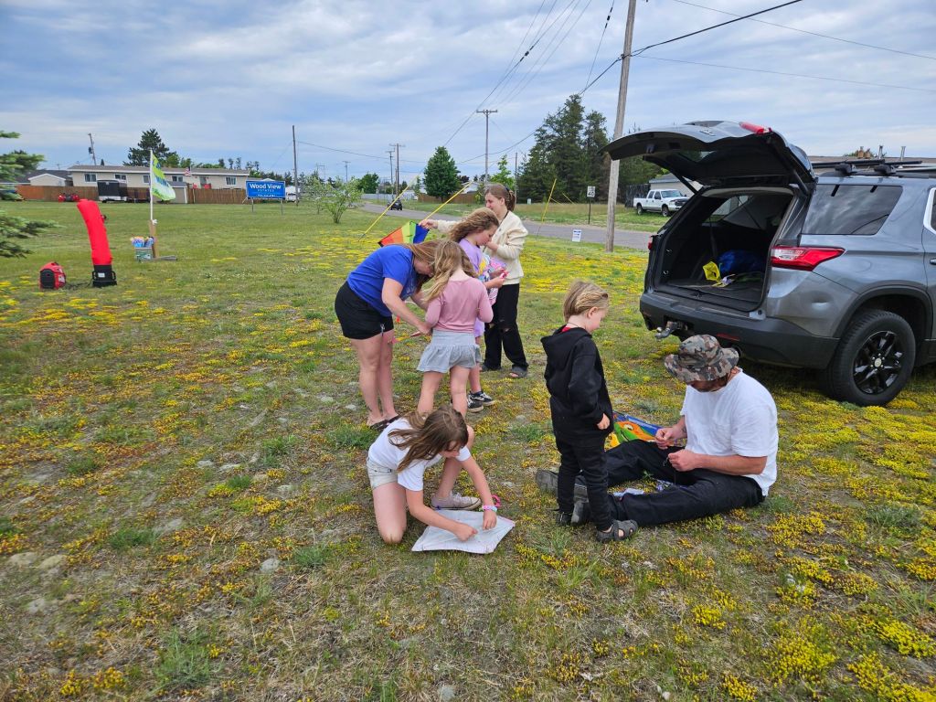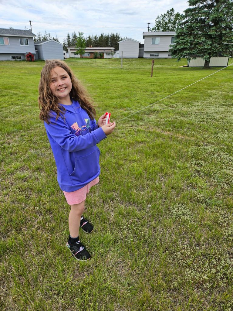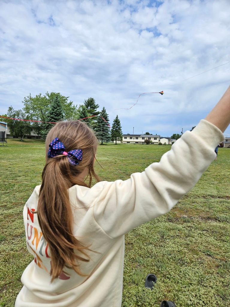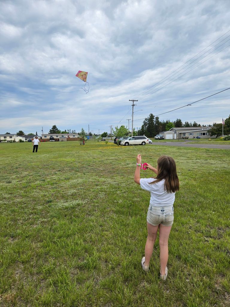 Today there were all kinds of things going on around our county for family fun. But there wasn’t much to do within walking distance in our neighborhood. So I bought a bunch of kites and hosted a fun afternoon of kite flying. I gave away 19 kites to kids who showed up. We had a dozen people, and the wind was just right. Perfect weather day for flying.