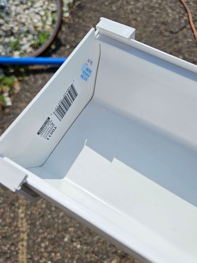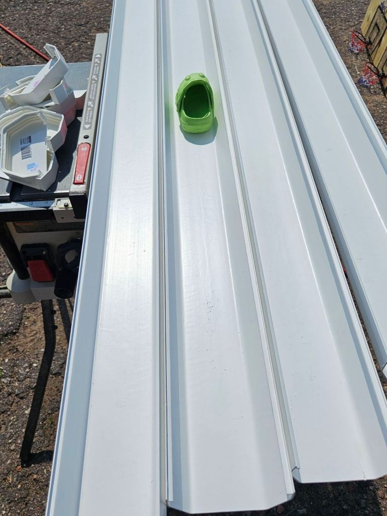 First we got two 10ft rain gutters and cut them in half. Then attached the water tight end caps.