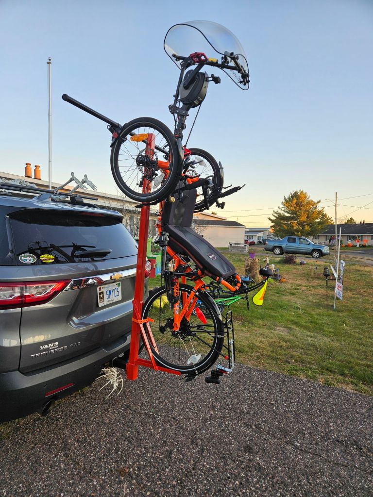 I wanted a trailer hitch style rack to make transporting easy. I have a roof setup but it’s really difficult to mount trike on it. Mathew offered to help and did an awesome job. Still takes two to load but way easier now.