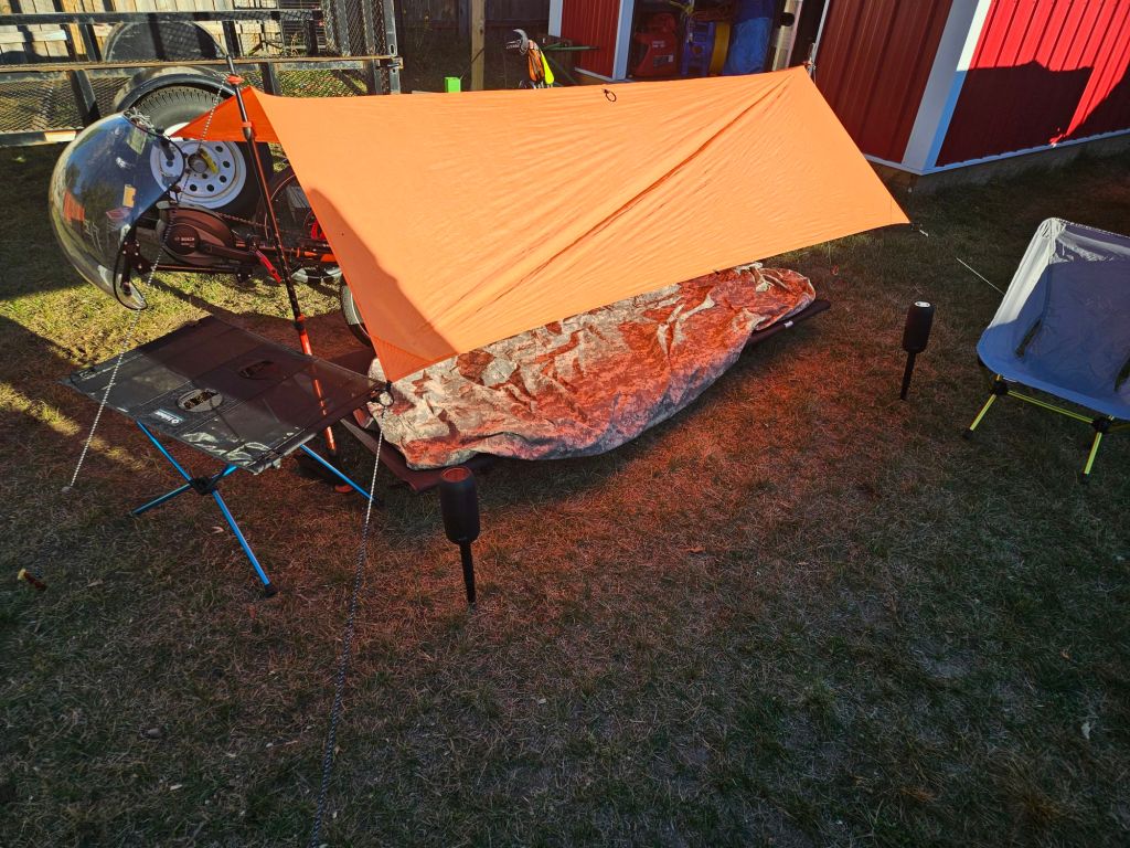 I also bring along a chair and table. The chair, cot, and table are Helinox brand. Worth every penny. Lightweight, easy assembly, and comfortable.