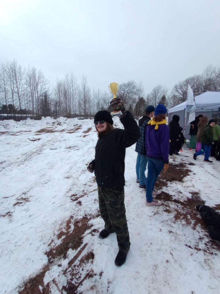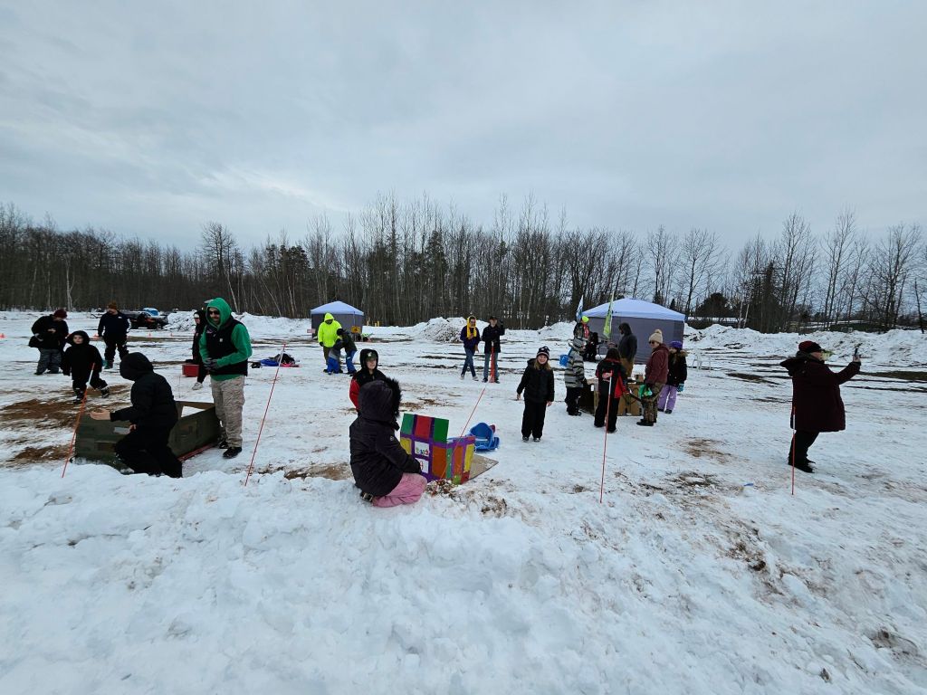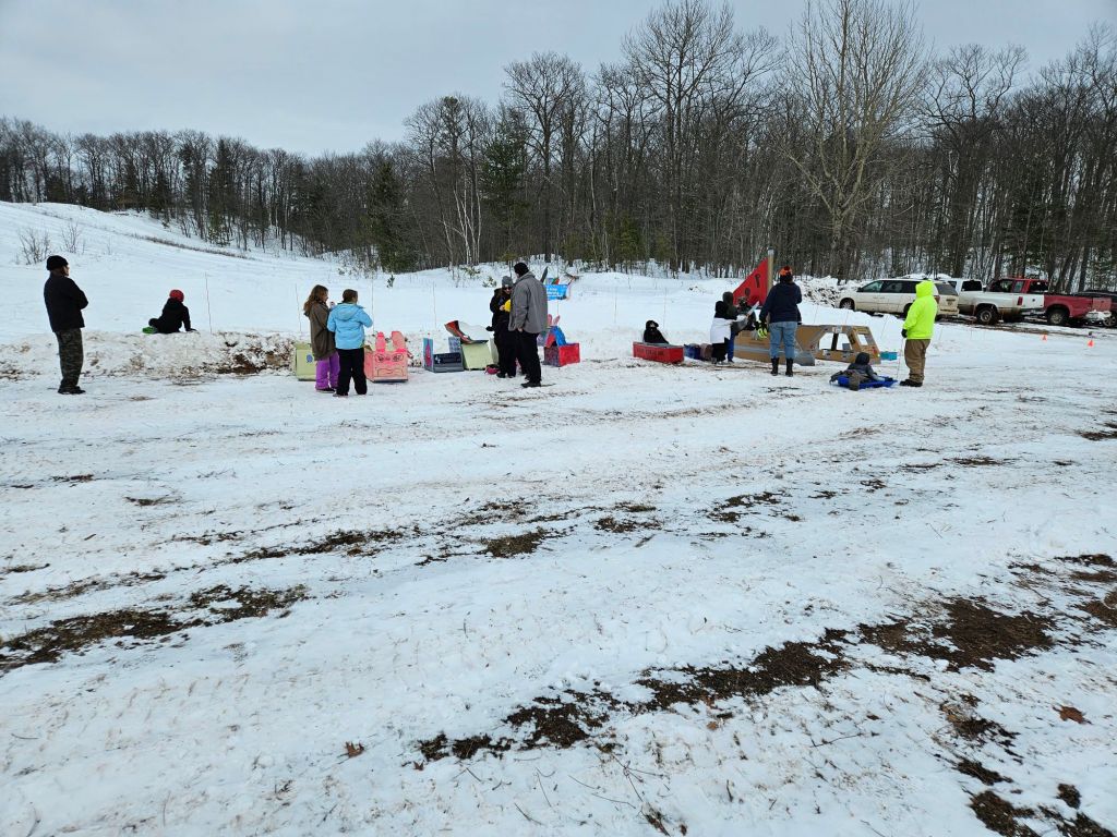 Special thanks to: Duane DuRay for getting the lot plowed. Cheyenne Wiliams for helping me setup the races. Addie’s parents for working registration. Gwinn Lions Club for providing insurance, port-a-jhons, and volunteers. Marcus Koponen for shuttling the racers to top of sled hill. And the local tribes for funding this event.