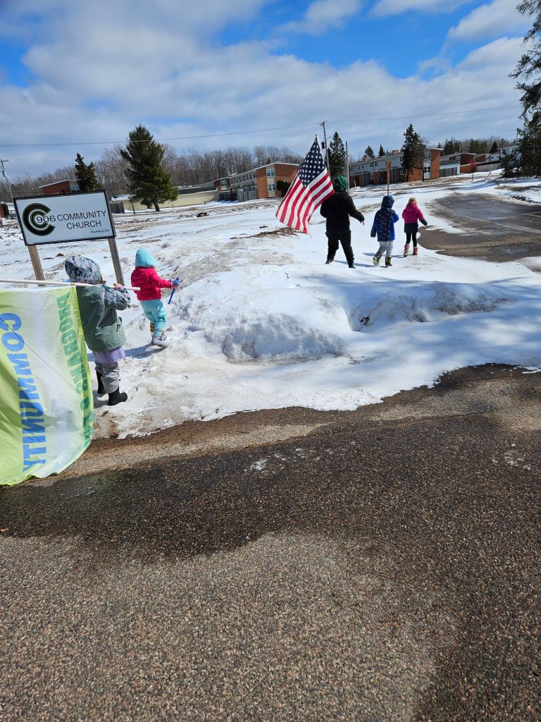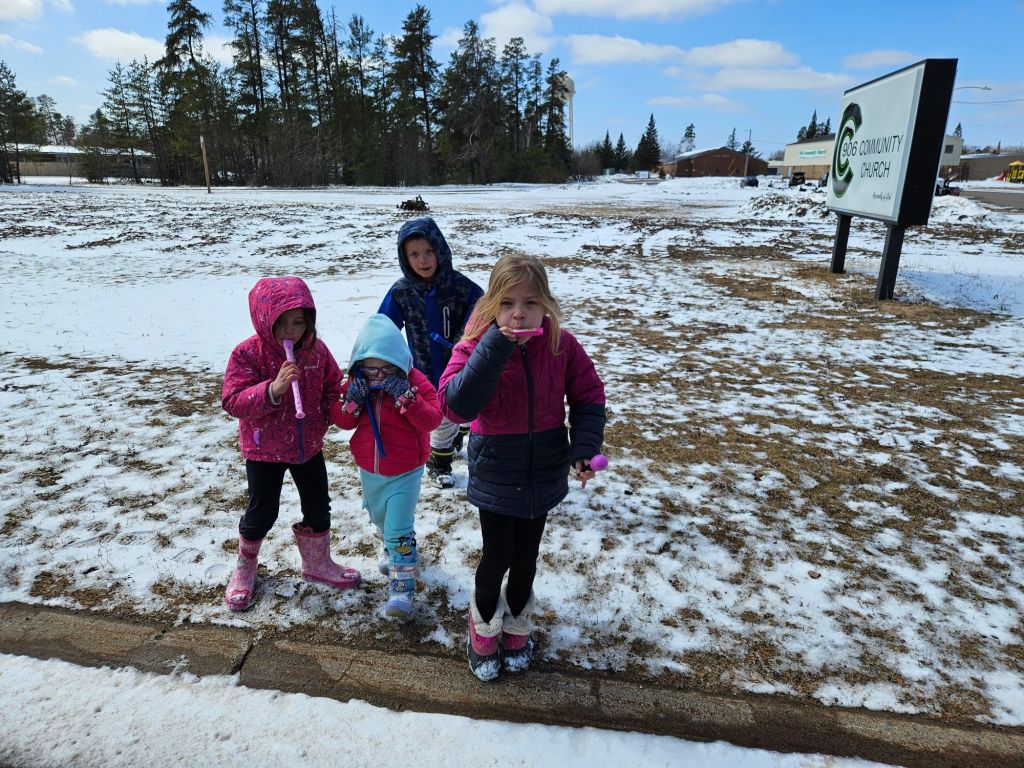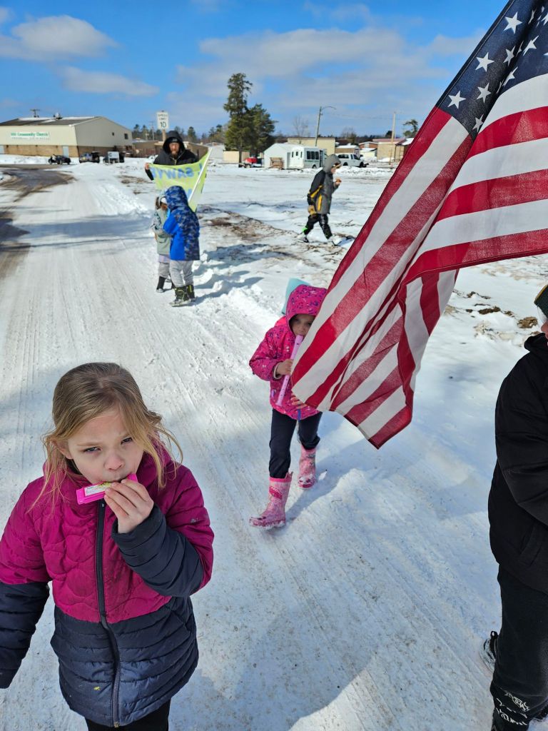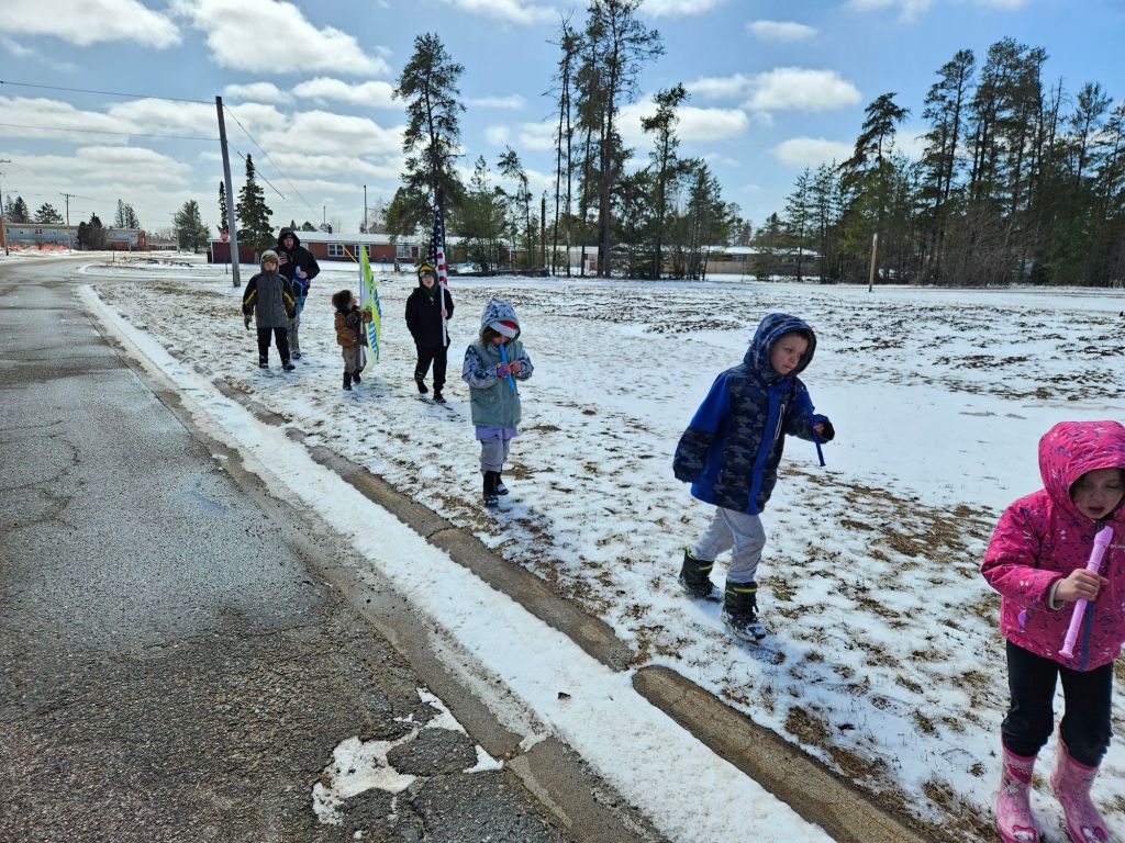 Here are some pictures of this years snow stompers doing their job making noise and stomping out the snow…