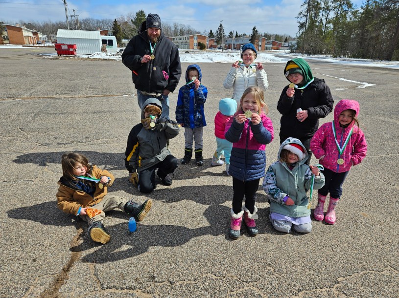 Here are some pictures of this years snow stompers doing their job making noise and stomping out the snow…