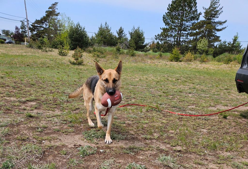 My German Shepherd named Kevin volunteers as the Ball Receiver Specialist…