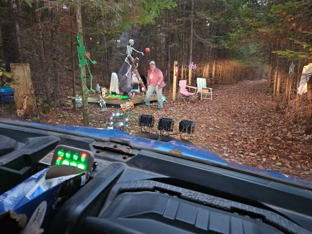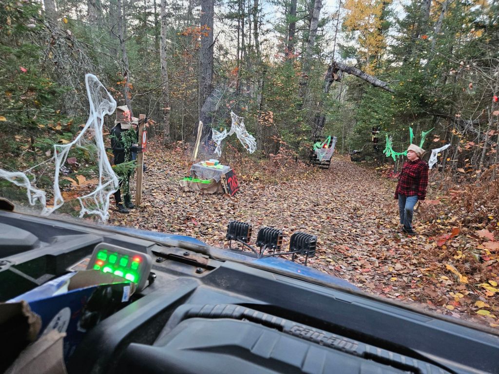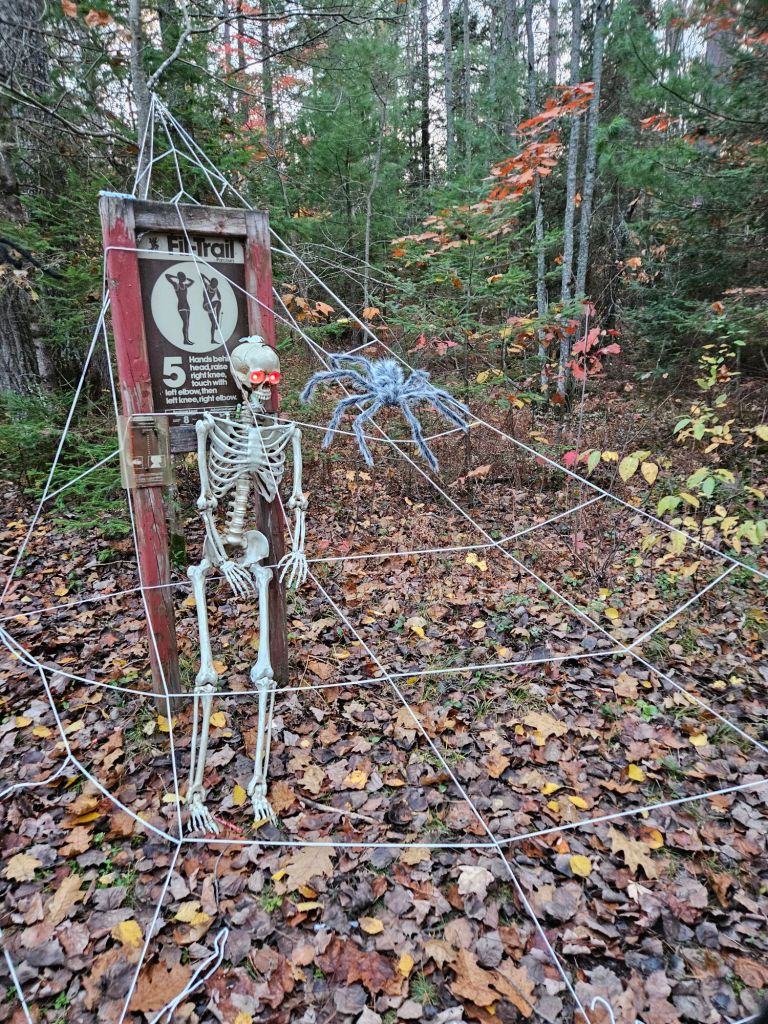 Every year for Halloween we convert the fitness trail, in the woods, into a mile and a half long haunted trail.